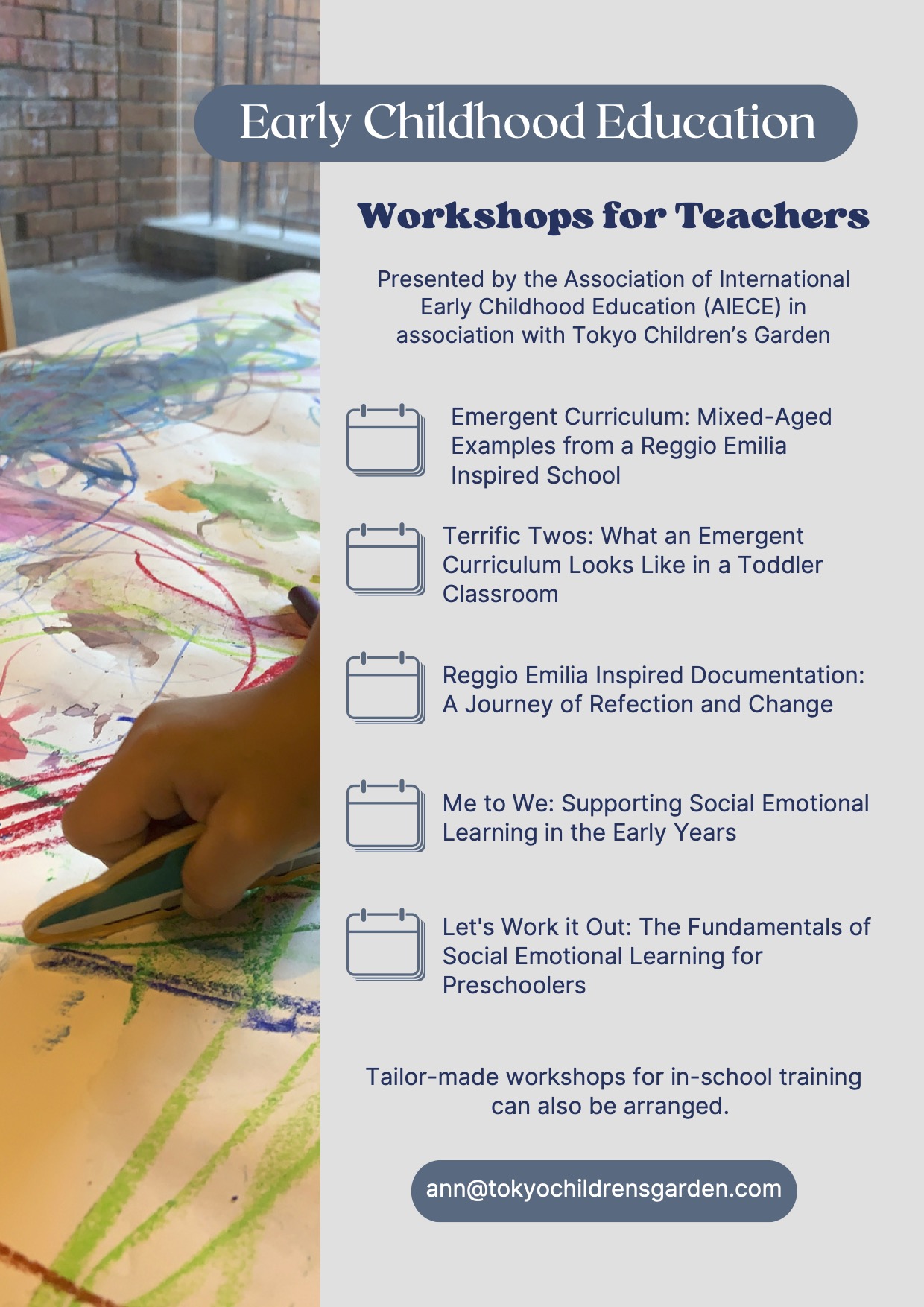 Tailor-made workshops for in-school training can also be arranged.